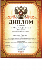 02.11.2016 11:27 Выпускница кафедры ИИиК Давыдова Виктория награждена дипломом I степени